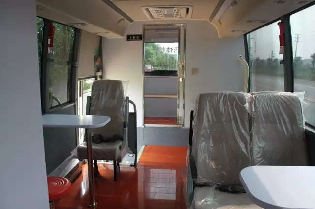 整车实木地板,体检车内采用全新工艺,颜色搭配更加清新舒适,布局更加合理。防毒,防潮,防细菌,没有异味。