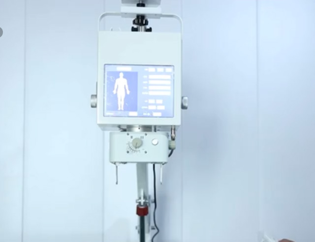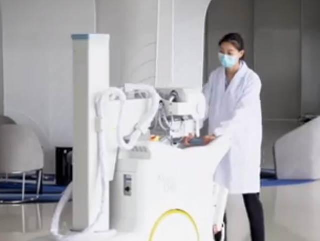 这是一台便携式移动DR,它的操作使用方法是怎样的呢?即使在最狭窄的空间内也易于操作和定位。首先打开开关把移动支架调整到合适的高度。机头调整到合适的拍摄高度,按下开关打开视野灯,调节照射灯的大小。调整束光器的视野范围,选择合适的部位调整KV、MA等曝光参数。数字工作站查看图像,曝光方式一:两档有线手闸曝光,曝光方法二:无线??仄毓?。这两种曝光方式选其中一个就可以了。电脑上显示图像,调整图像到满意的状态就可以了。高千伏摄影图像图层层次更加丰富,X射线穿透力更强适用多体型患者拍摄。跟固定DR的拍摄效果差不多,临床图像清晰。极速快充电,即插即用型。