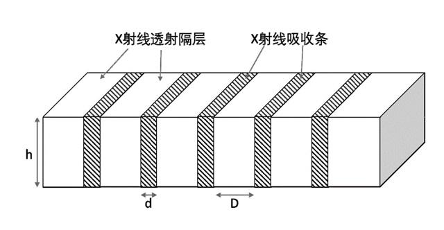 焦距(f):断面看铅条延长线会聚点到栅板垂直距离,即栅板焦距(半径)。栅密度(N):每厘米范围内含有的铅条数,一般40~65线/cm。栅比(R):铅条高度与栅条间隙之比,比值越高滤除散射线能力越强,一般8:1~14:1之间。结构组成:3~5mm薄板,用0.05~0.1mm铅条,夹持在铝或纸之间平行或按斜率排列,相邻铅条间用易透X线物质填充定位、黏合,如木、纸、铝片等。