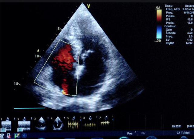 (三)检测节段性室壁运动异常,研究冠心病患者左心室功能和分析局部室壁运动过程中。测量每一节段室壁的运动量,运动正常的节段彩带色彩均匀层次光整。运动减弱的节段,厚度薄层次不全。心内膜位移幅度和速度均减低。心内膜位移幅度和速度甚低或难以测得。正常的多层彩带消失,呈现红色色带,心内膜位移呈负向,幅度和速度亦减低。急性心肌梗死的患者中可用于识别存活心肌抑或坏死心肌。多巴酚丁胺负荷试验存活心肌的心内膜位移幅度增高,停药后即消失,而坏死心肌则无上述表现。实时检查冠心病的节段性室壁运动异常,有时候通过发现局部心肌运动的时相异常,对于心脏传导障碍的诊断也可能有帮助。