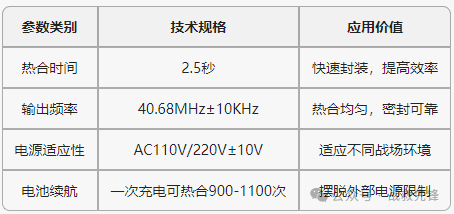 野战医院的救护环境,每一分每一秒都关乎生命。密封医疗包装的精准手热合机是关键设备。精准、高效、稳定的性能战伤救治生命保障线。热合机的工作原理是它是利用高频电场原理塑料熔接,巧妙的温度控制设计,增加了机体温度自动监控和反馈调节机制;通过内循环进风散热工业设计及相关散热装置,可连续热合>400次,保证热合机高频率使用时温度的可控性,提高工作效率,保障热合效果,延长设备使用寿命。使塑料内部分子发生极化并高速运动产生热量,从而达到熔接效果。设备工作时,PVC材料达到熔融状态,同时在热合电极的压力下完成密封,避免液体渗漏和细菌污染。
