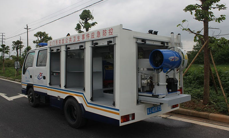 消杀车的后工作平台带专业的远程风送式喷药打药机,雾化效果好,喷药范围广,流动性强
